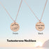 "Self Made" and the chemical symbol for Testosterone stamped into a beautiful shiny stainless steel pendant.